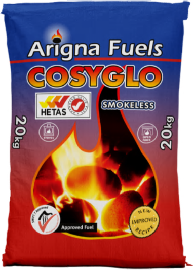 COSYGLO Briquettes are an economy, Low Ash, cost-effective smokeless fuel which has been designed to give a consistant burn quality.